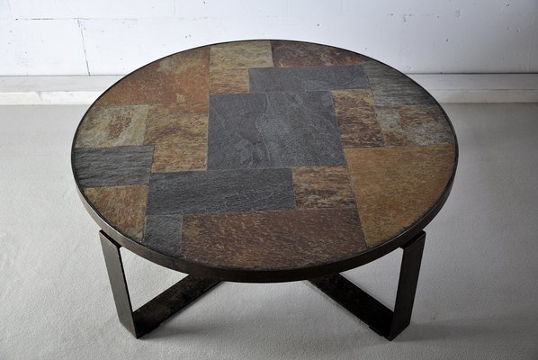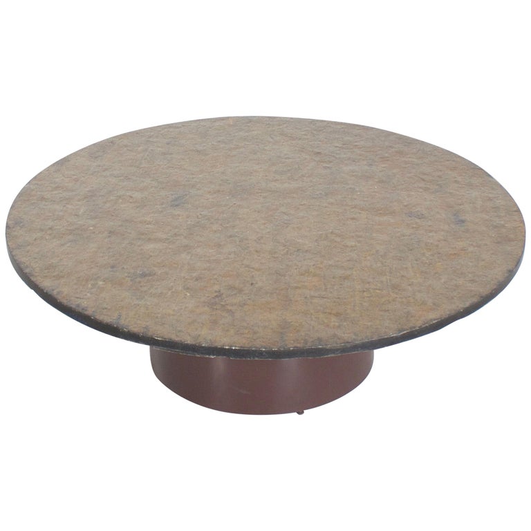 Brutalist 1970s Round Coffee Table With A Brown Green Slate Top For Sale At 1stdibs